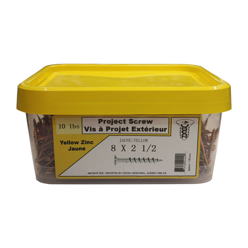 #8x2-1/2" FHS PROJECT WOOD SCREW YELLOW 10 LB PAIL