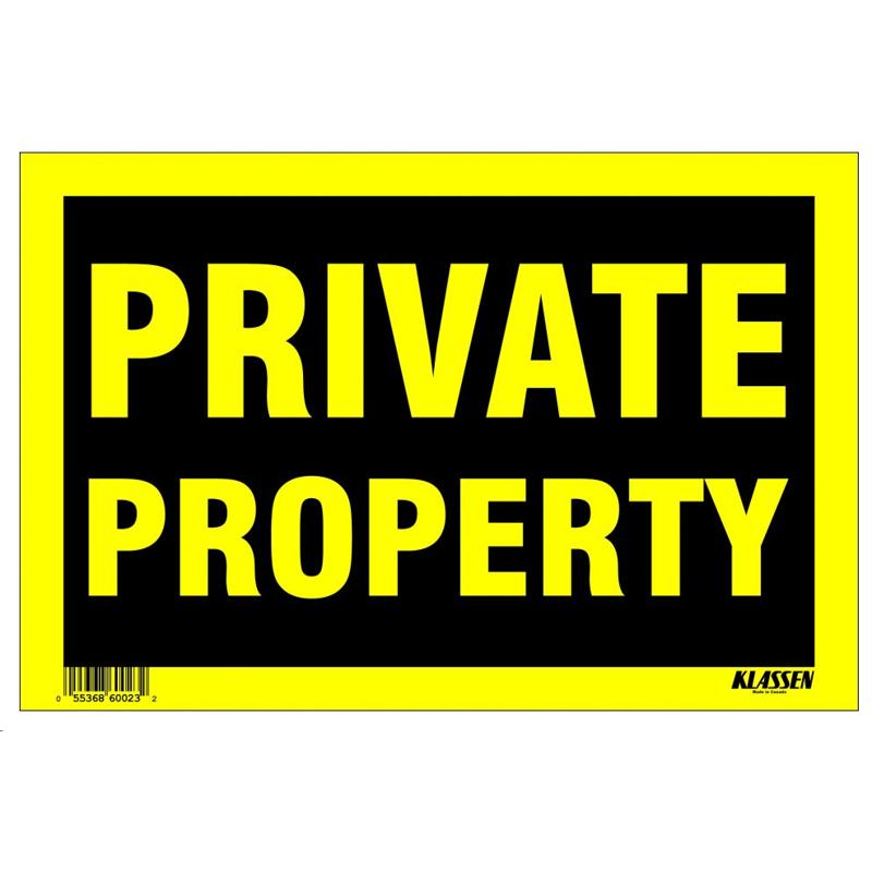 8"X12" SIGN - PRIVATE PROPERTY YELLOW